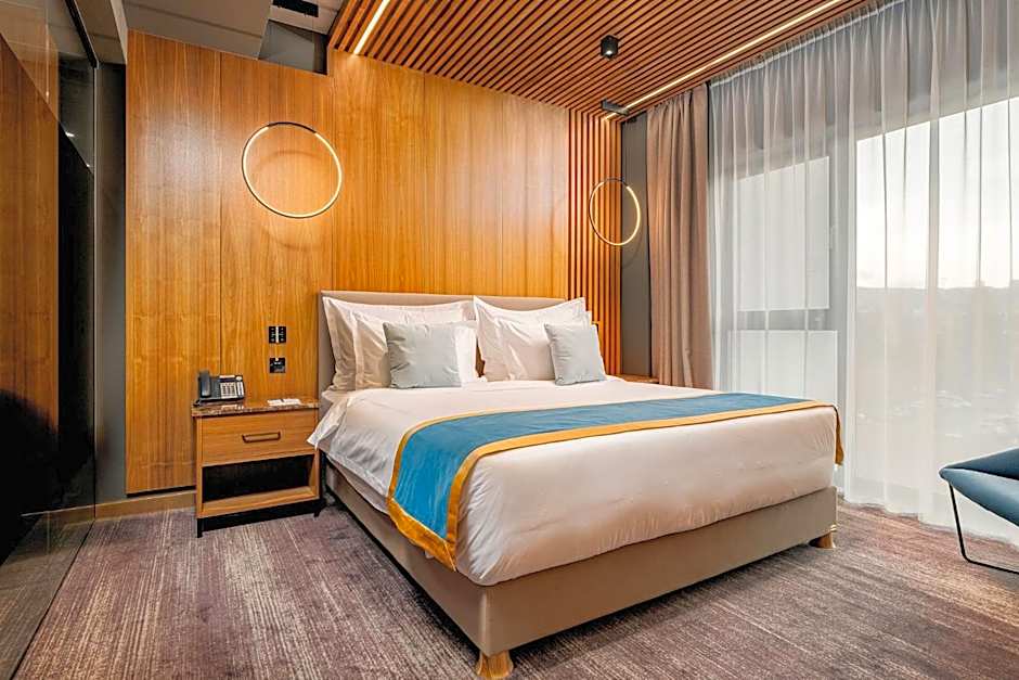 This suite consists of 1 living room, 1 separate bedroom and 1 bathroom with a walk-in shower and free toiletries. The air-conditioned suite provides a flat-screen TV with cable channels, soundproof walls, a mini-bar, a tea and coffee maker as well as city views. The unit offers 1 bed.